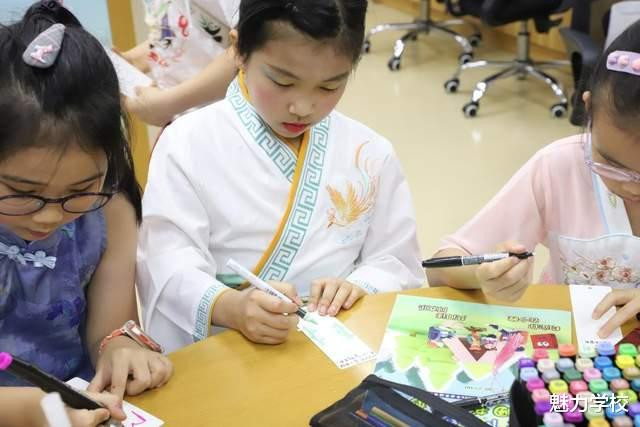 低年事同学在有瞻念看室典籍寻宝、团扇创意绘图,在童话寰宇里获利阅读乐趣;