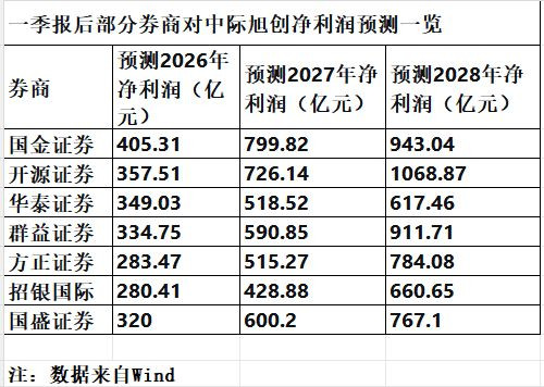就2026年预测值来看,华泰证券、群益证券等多家券商的预测值在300亿-350亿元,国金证券最为乐不雅,达到405.31亿元。此外,开源证券对中际旭创2028年的净利润预测值达到了1068.87亿元。