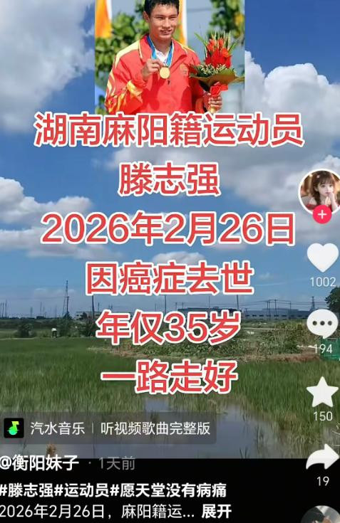 一则平平无奇致使莫得任何修饰语的讣告,频频最扎心:滕志强,34岁,广州亚运会冠军、还打过伦敦奥运会的国度队领悟员,就在2026年2月26日离世。