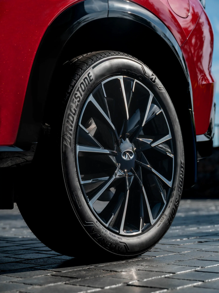 并且能看到的是,总计前脸显得比拟凶残,灵通式的进气格栅照旧富余品牌辨识度的,它在边框容貌与尺寸规格上会有点儿QX80的酷好,并且全黑的涂装搭配带有里面扩散器的前保障杠包围,在引导这件事上,新车照旧挺谨慎的。另外,好多东说念主皆看到了车辆独到的日行灯与导流交融的遐迩光大灯,但在这些灯组以外,无论是引擎舱上酿成的厉害凸起,照旧侧边区域酿成的切角,英菲尼迪QX65如实从轿跑车里学了不少东西。