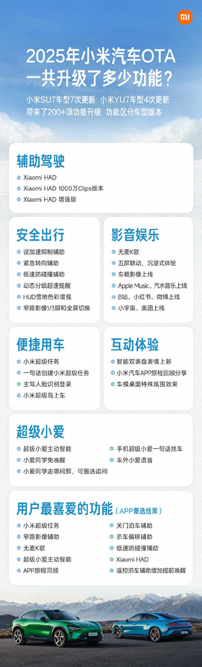 威斯人 小米汽车2025年带来200+项功能更新, 车主最深爱TOP10公布