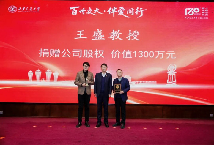 王盛捐赠价值1300万元的股权。