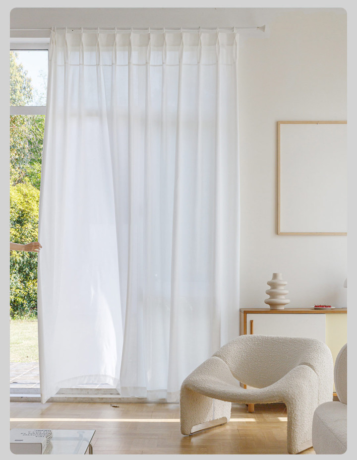 当初幻想着微风拂过,仙气飘飘。现实是,独一开窗一天,纱帘上就挂满灰尘和毛毛,半个月就得洗一次。况且遮光性为零,夏天周末想睡个懒觉,阳光一照根柢睡不着。临了默然换回了遮光好的布帘随机百叶窗,丑是丑了点,但休眠自若了。