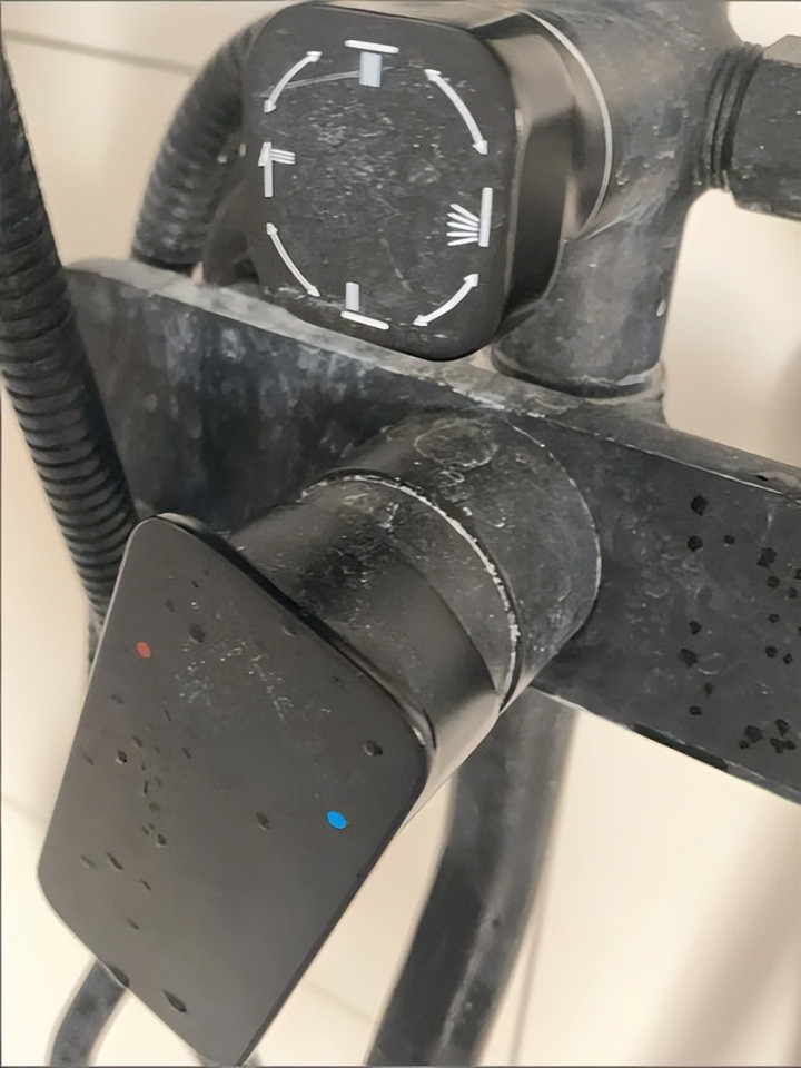 跟玄色洗手盆一个舛错,水垢的天选之子。每次洗完澡都得用刮板刮一遍,否则就全是白印子。不如畴昔银色或不锈钢的,有点水渍也看不出来,释怀太多。