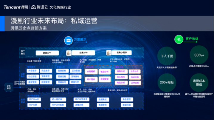 私域运营方面,腾讯云提供好意思满的企点营销决议。咫尺许多零卖、传媒、泛互客户皆在使用我们这套企点营销决议,包括企业微信、微信一又友圈互动和品牌宣发,皆是基于这一套产物,它不仅提供客户自研APP内的用户数据交互与分析,以私域流量为中枢的微信生态皆能带来强有劲的支抓。