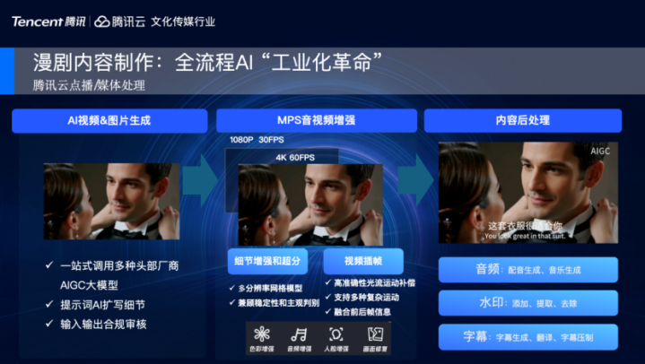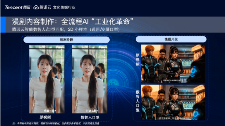 其次是全链路经由化功课,尽可能少东说念主工扰乱的全智能化分娩是抓续追赶的臆度,对此,腾讯提供多款AI短漫剧使命流劳动产物,待会也会逐一小心地先容。