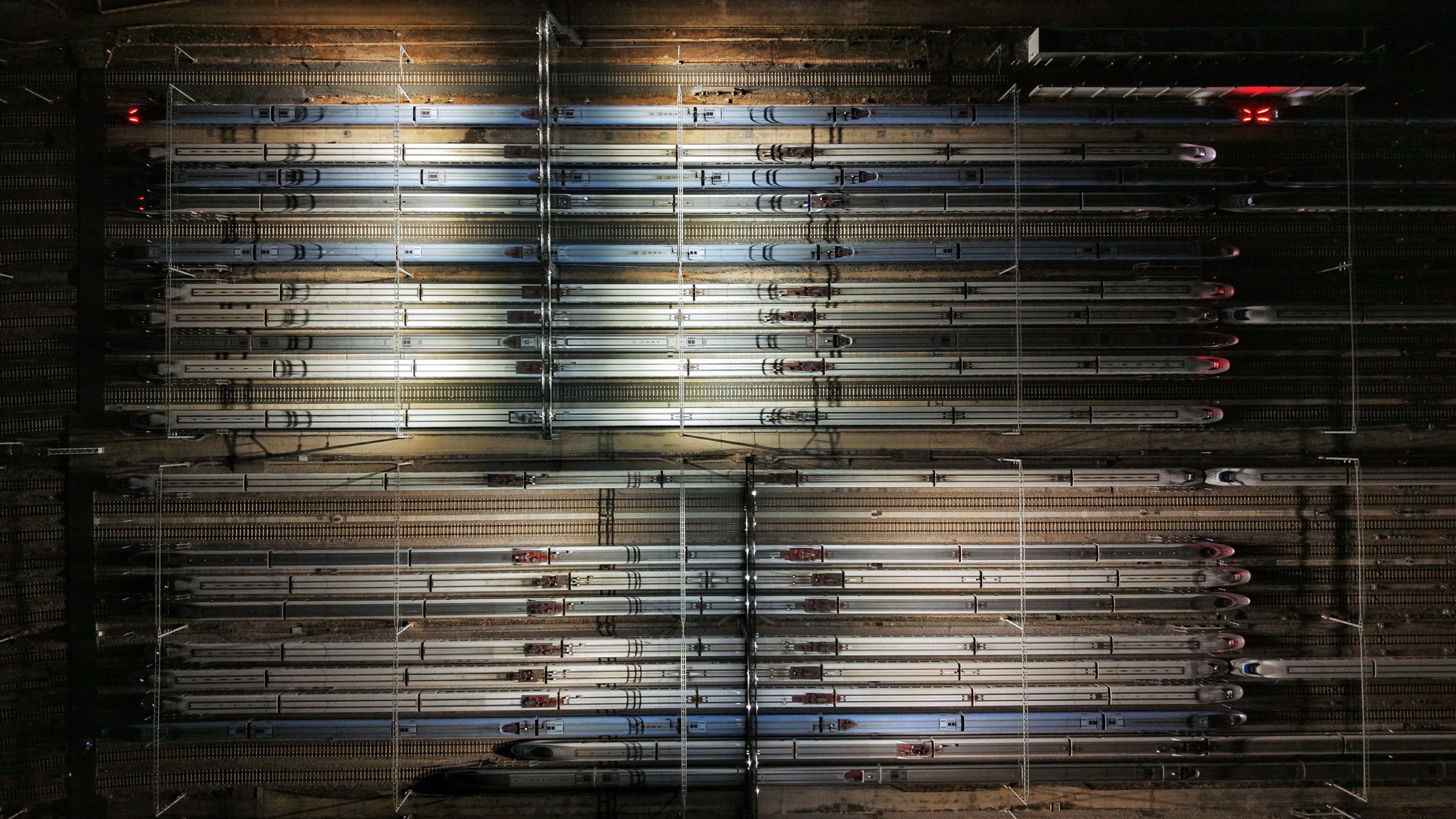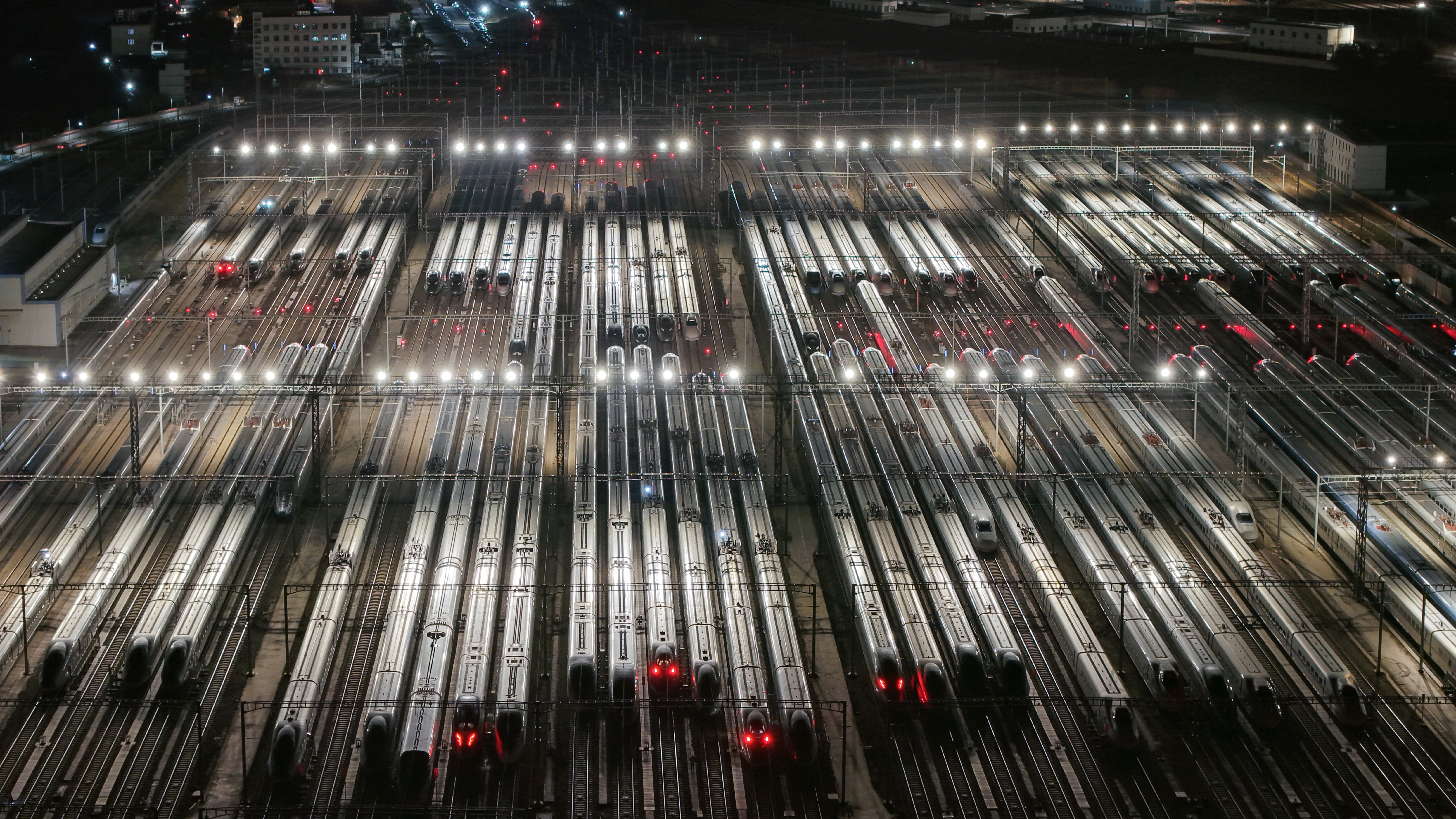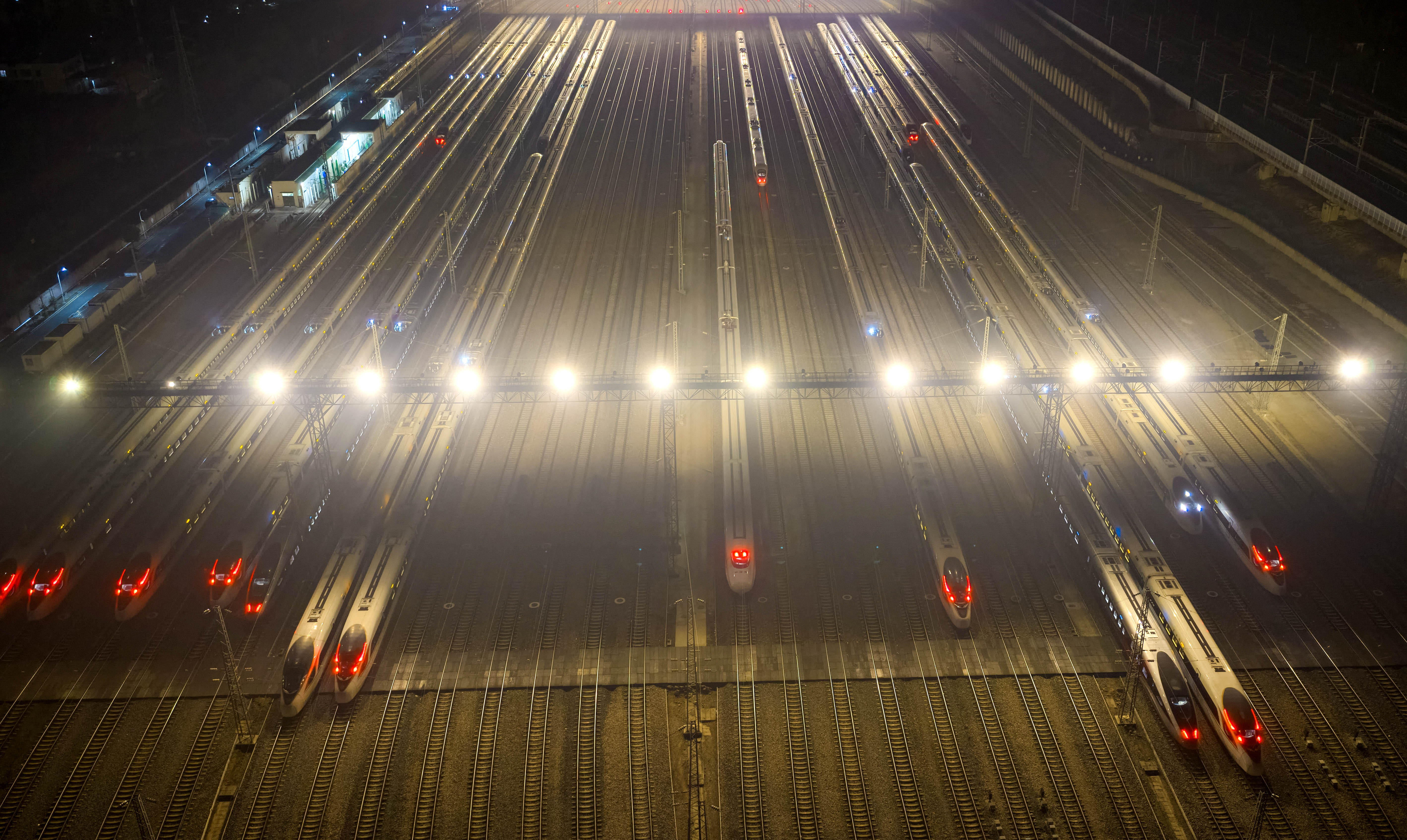 ↑ 这是1月25日凌晨在昆明车辆段昆明南动车诳骗所拍摄的动车组列车(无东说念主机相片)。新华社发(杨紫轩摄)