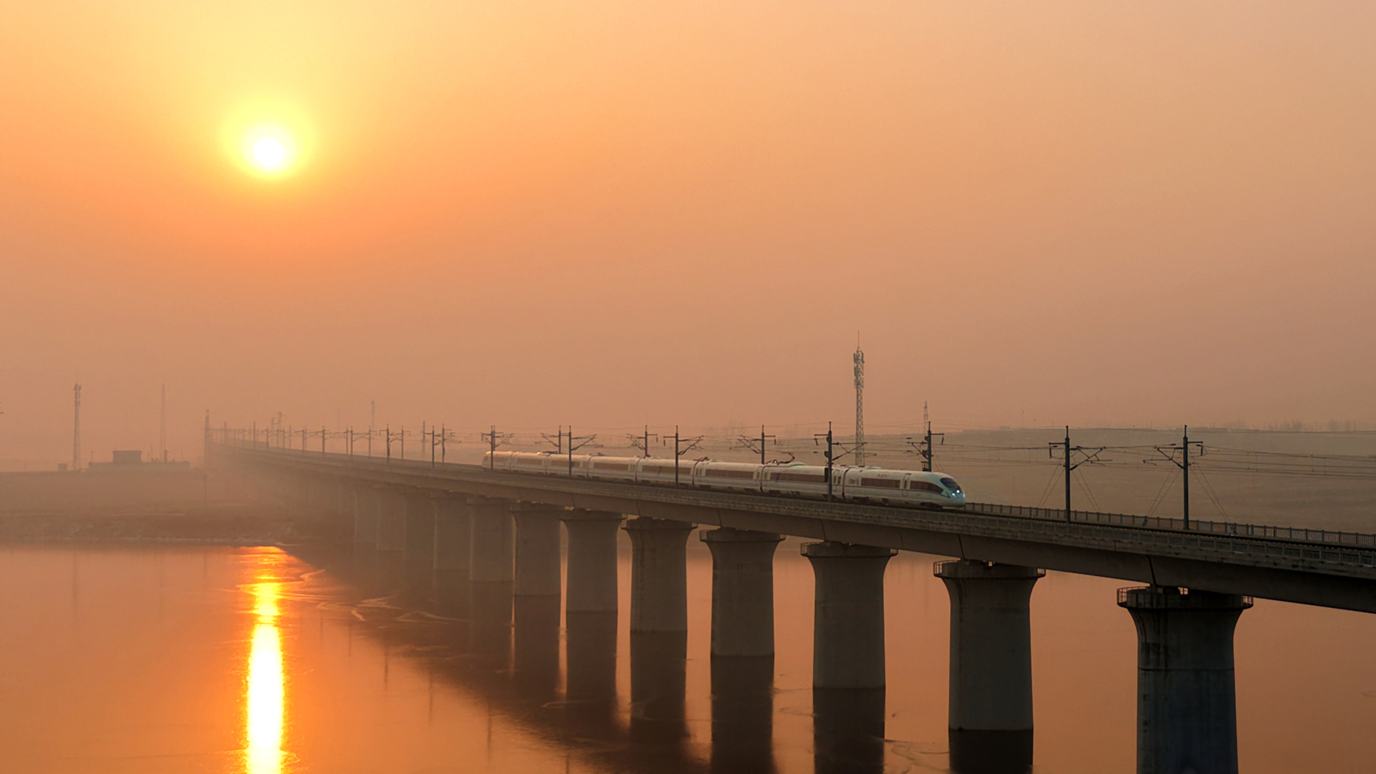 ↑ 1月25日,列车行驶在江苏省泰州市海陵区境内(无东说念主机相片)。新华社发(汤德宏 摄)