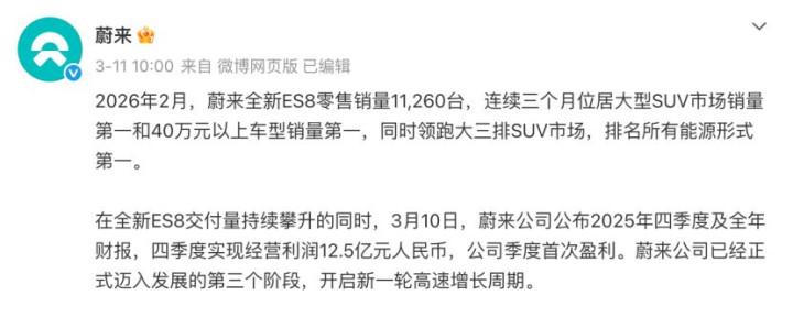 临了澳门威斯人app下载,基于发布会后的采访,蔚来暗意订单情况达到预期,蔚来社区以外的订单量是旧年ES8同期的1.5倍(不可理会为订单量比ES8高1.5倍)。因此,不错乐不雅瞻望ES9阐明上市后的线路十分值得期待,也有望成为蔚来公司清静盈利,销量增量的一大保险。