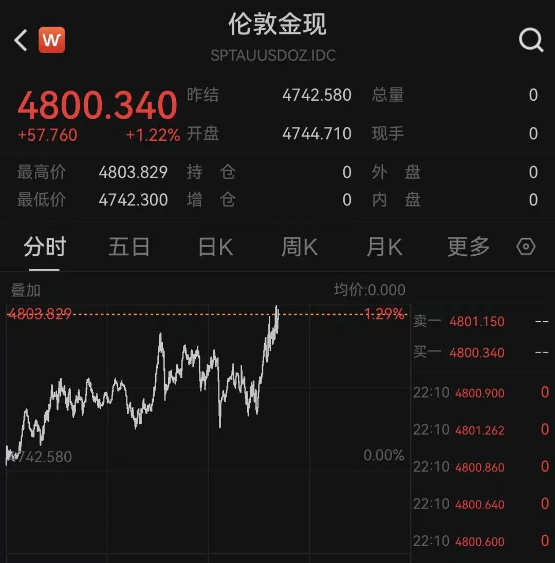 值得难得的是,黄金与白银直线拉升,已毕发稿,现货黄金涨超1%,盘中突破4800好意思元,现货白银更是大涨逾4%。