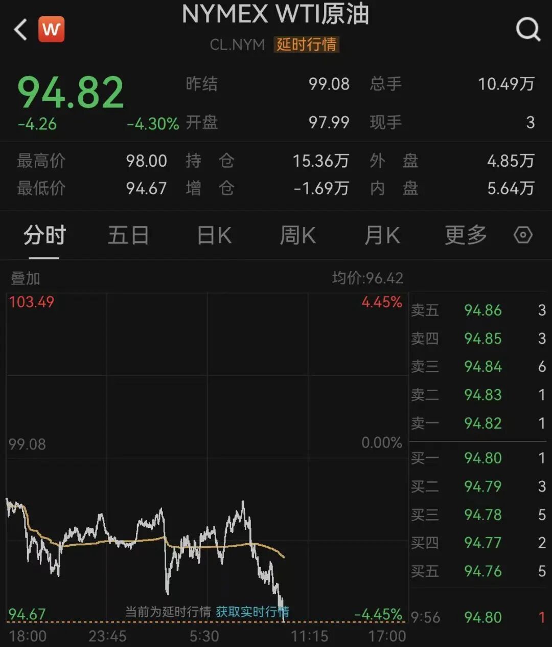 而原油则出现大跳水走势,已毕发稿,WTI原油跌超4%。