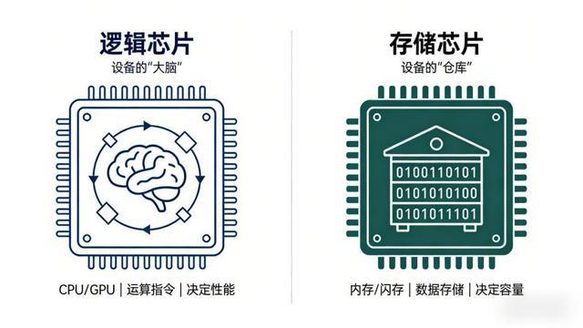 另一大类就是存储芯片。它是电子开导的“仓库”,中枢职业是放心、捏久地保存二进制的 0 和 1 数据,不承担通用运算任务。咱们能在平时使用的开导里留存些许文献、些许内容,中枢就取决于开导中存储芯片的容量。